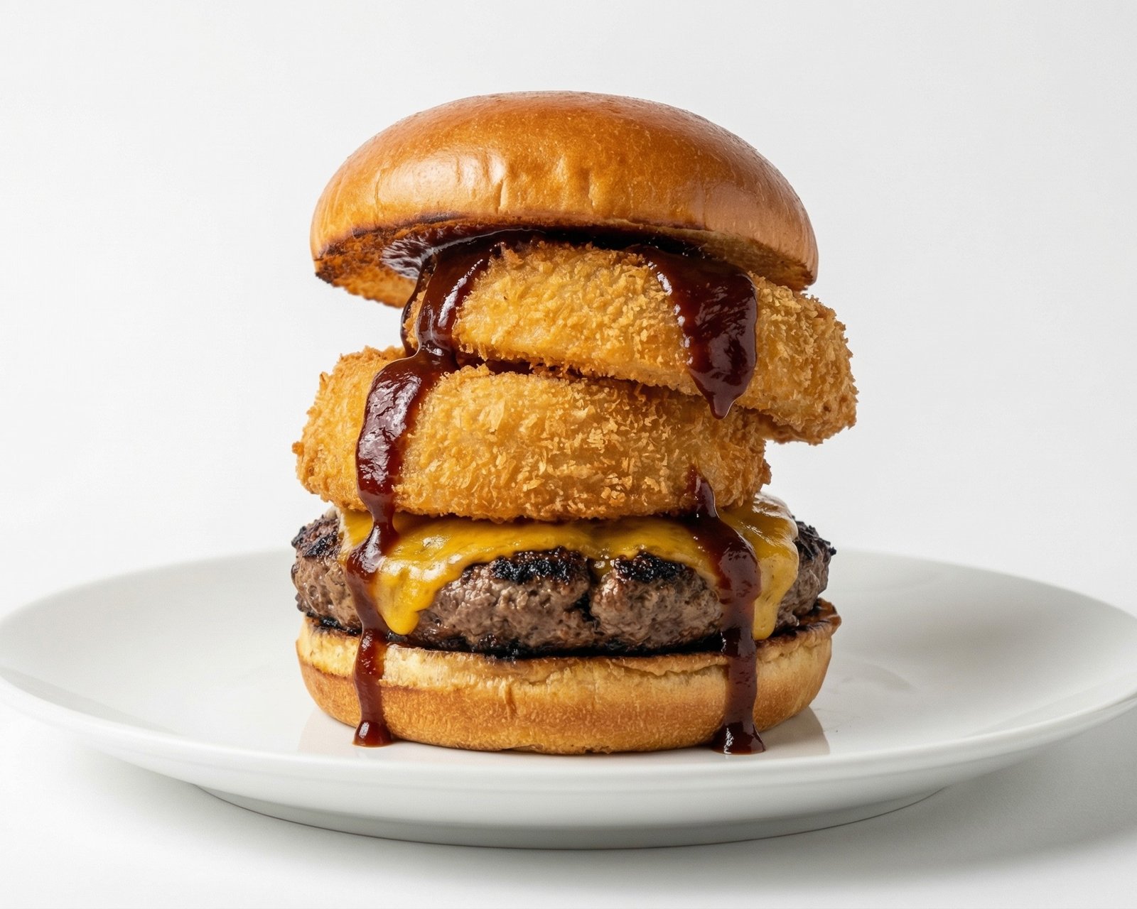 Double beef patty stacked with crispy beef bacon and cheddar.