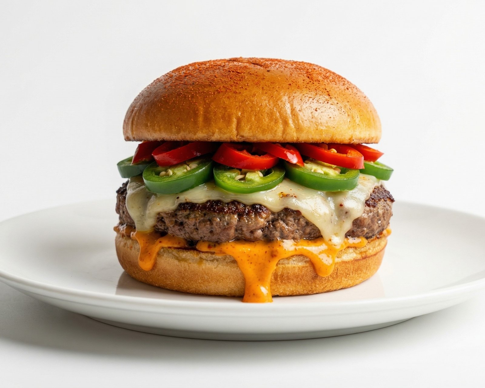 Texture and tang combined. We glaze our beef patty in a smoky hickory BBQ sauce and top it with two massive, crispy-battered onion rings and melted cheddar. The crunch of the onion rings pairs perfectly with the soft bun and juicy meat.